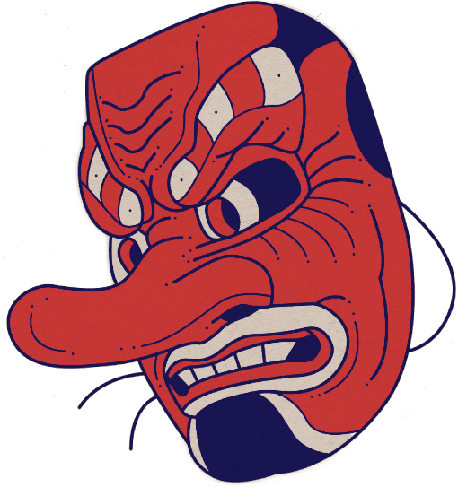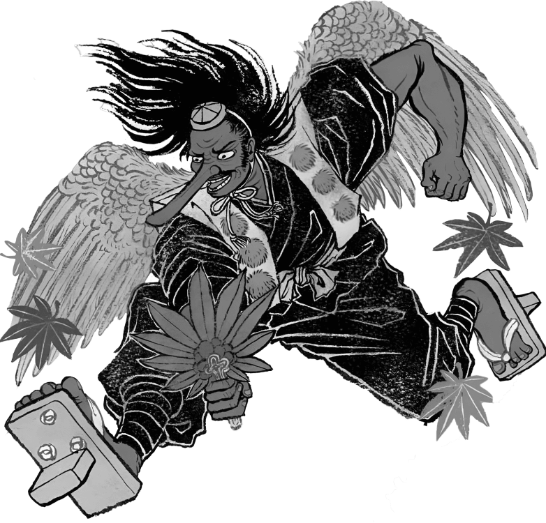 He has the appearance of a man of huge height with a red face, long nose, sometimes with wings. Tengu very often wears the clothes of a mountain hermit yamabushi. He is, in Japanese, a kowamote-type character: both formidable and attractive.